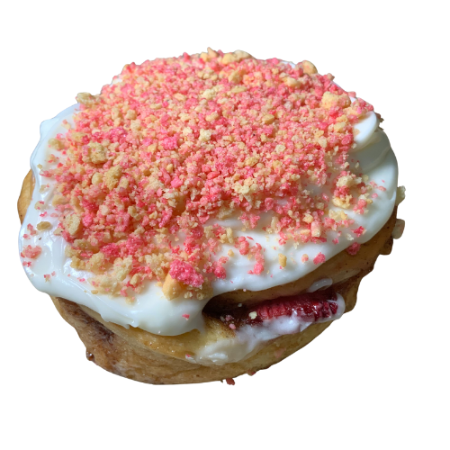 Experience the ultimate indulgence with our Berry Sin-A-Bun! This tantalizing hand-crafted bun is bursting with the fresh flavor of strawberries, baked to perfection. Each bite is a journey for the senses, topped with creamy cream cheese icing and crunchy pecans or cookie crumbs. Treat yourself to this unique and sophisticated delight.