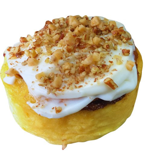 Indulge in the intoxicating flavors of our Original Drunken Sin-A-Bun (Cinnamon Roll)! This butter rum flavored cinnamon roll is infused with Hennessey and topped with creamy cream cheese icing; sprinkled with crunchy pecans or cookies crumbs or hit with a drizzle of Suga's homemade sticky sauce.