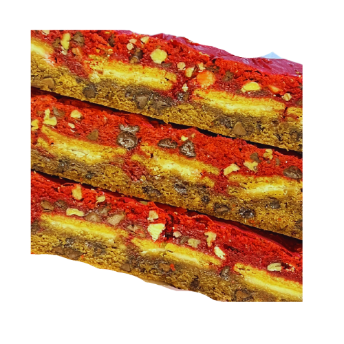 Indulge in the ultimate dessert experience with our Ms. 007 Brownie. This decadent creation features a loaded chocolate chip cookie base, drizzled with homemade caramel sauce, topped with vanilla Oreos, and crowned with a rich red velvet chocolate chip brownie studded with pecans. Each bite delivers an irresistible combination of textures and flavors that will satisfy even the most sophisticated sweet tooth. Your taste buds deserve this luxurious treat.