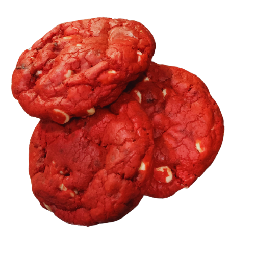 Flour, Granulated Sugar, Brown Sugar, Butter, Eggs, Extract: Strawberry, Cheesecake, Dried Berries, White Chocolate, Baking Soda, Salt.
